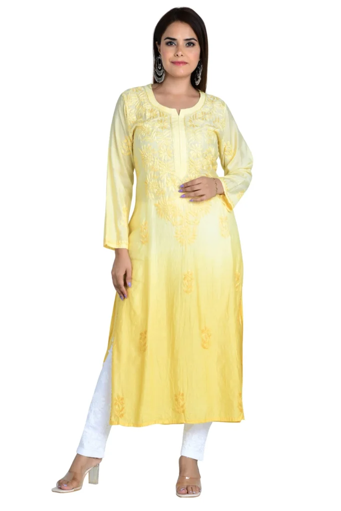 Heer Pure Mulmul Cotton Chikankari Straight Kurta – Yellow