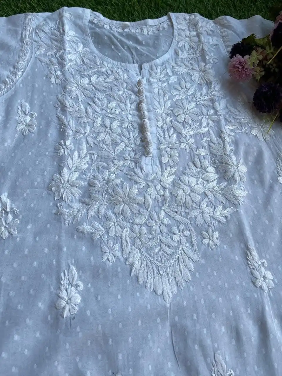 Intricate chikankari embroidery